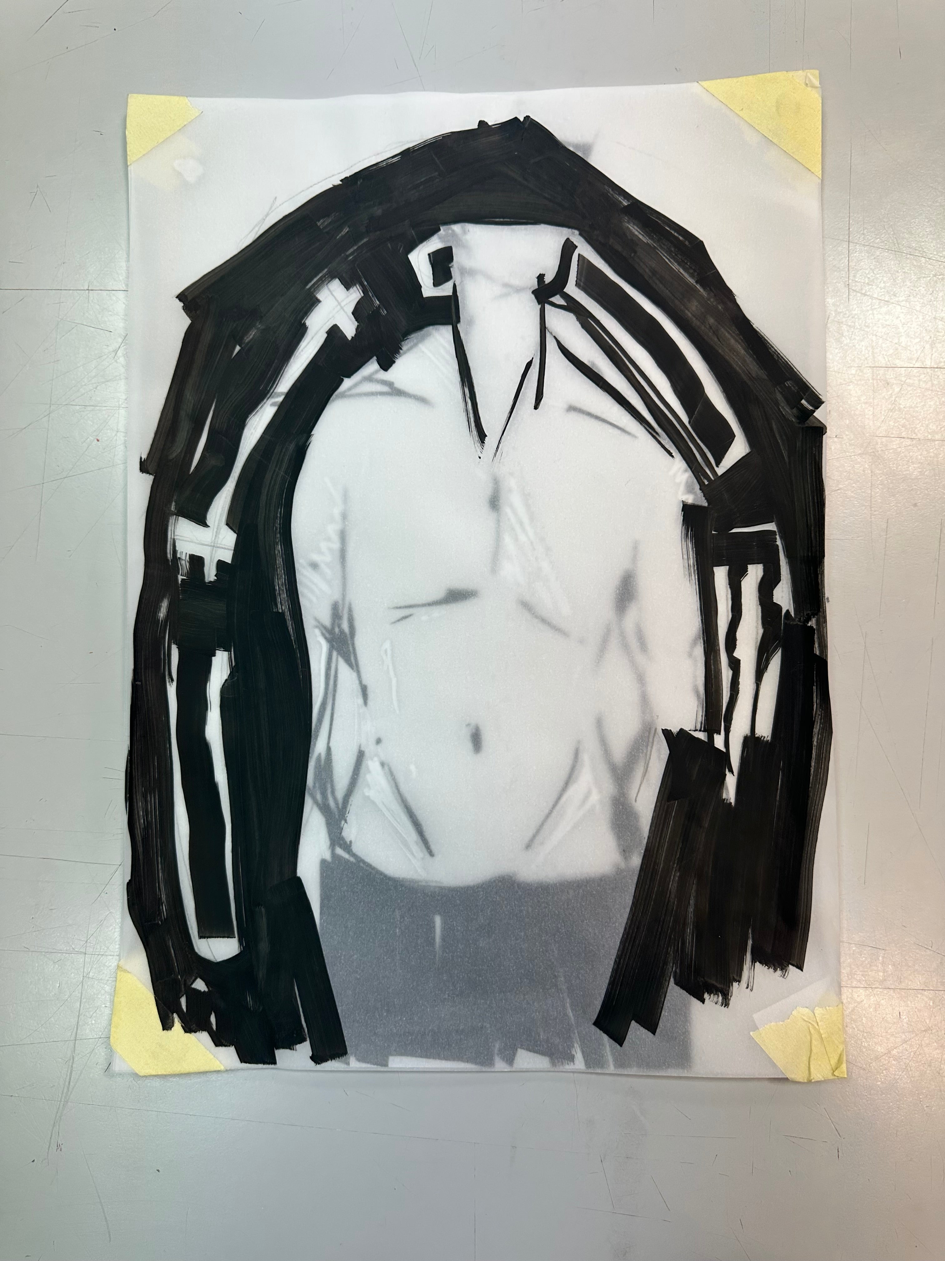 yeah nah i did this with a bunch of like, sheets of tracing paper, so i did one with like a thin silver posca marker, then like another one with an inital sketch of the figure, theres 4 in total, the fourth one being the scarf.